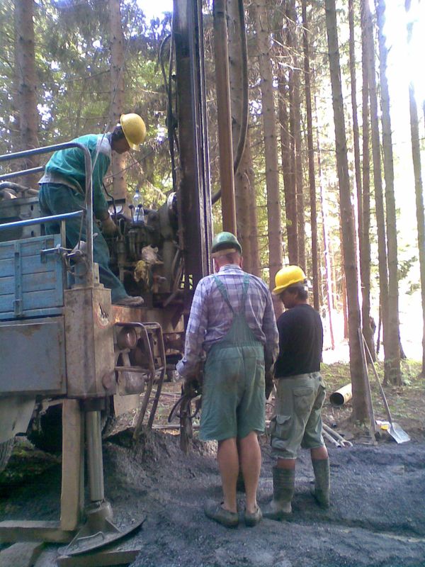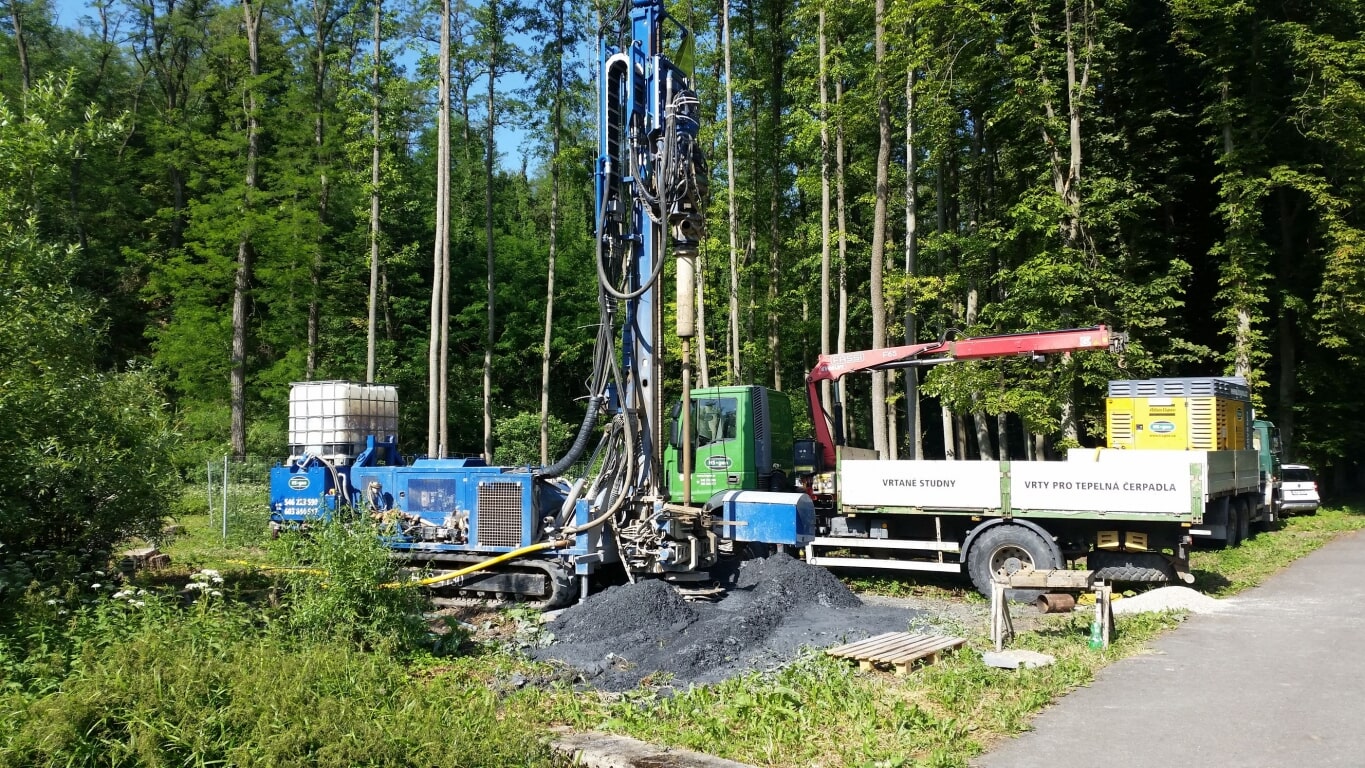 Nabízíme vrty pro tepelná čerpadla systému země-voda. Díky moderní vrtací soupravě vybavené dvěma rotačními hlavami, umíme rychle a bezpečně propažit nesoudržné horniny za současného vrtání. Souprava je vybavena tzv. preventrem, který umožňuje řízený odvod vrtné drtě (např. do vodotěsného kontejneru nebo do vykopané jímky). Do vrtů jsou následně zapuštěny sondy (kolektory), výhradně v materiálovém provedení PE 100 RC. K injektáži kolektorů používáme cementobentonitovou směs.